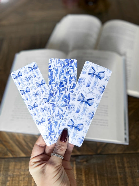 French Blue Bow Bookmark, Small Blue Bow Bookmark, and Blue Leaves Bookmark